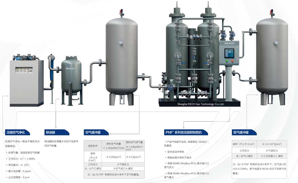 PNF+系列變壓吸附制氮機,通過領先的工藝流程和節能控制技術,配置高品質、高效率分子篩和國際知名品牌部件,確保了性能可靠穩定,具有出色的節能效果。